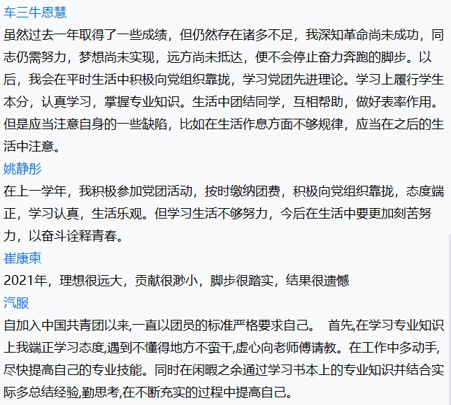本次专题组织生活会及团员评议的召开,增强了团支部的凝聚力和号召力,使团员们及时地自我反省与纠正,相信大家能够谨记总书记教诲,心系祖国,志存高远,脚踏实地,在奋斗中创造精彩人生,为祖国和人民贡献青春和力量。