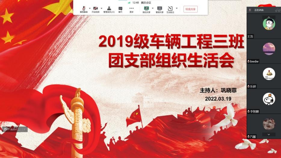3月19日下午,成人漫画 2019级车辆工程三班团支部通过腾讯会议召开了专题组织生活会及团员评议,车辆三班团支部全体成员参加会议。会议由团支部书记巩晓菲主持。
