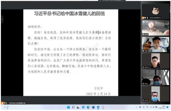 各团支部组织召开专题组织生活会,通过集中学习和自学相结合的方式开展会前学习;2021220101团支部认真学习了习近平总书记“七一”重要讲话精神,2019220101团支部组织学习习近平总书记给中国冰雪健儿的回信精神,2019220202团支部对党的十九届六中全会精神进行了交流体会认识等。