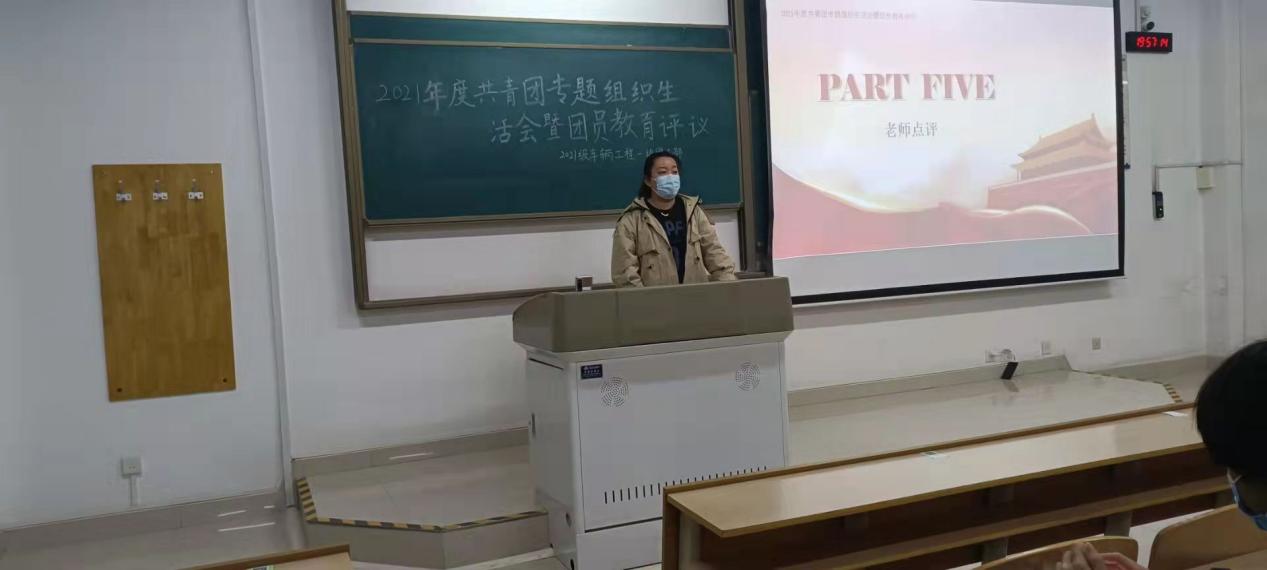各团支部书记汇报支部开展党史学习情况,并结合团支部工作和个人实际交流体会认识。支部委员进行了一学年的工作总结和个人述职,各位团员总结了参加支部组织的活动所取得的成绩。全体团员本着“实事求是”的原则开展自我批评与批评,从有信仰、讲政治、重品行、争先锋、守纪律等五个方面进行团员教育评议自我评价和团员先进性评价自评。团支部综合个人自评、团员互评和测评投票结果,结合团员日常表现,对每名团员按照优秀、合格、基本合格、不合格四个等级给出建议评议等次。
