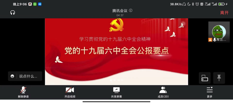 为深入贯彻学习十九届六中全会精神,增强青年使命感和责任感,让团支部成员们学习奋战在抗疫一线志愿者们的奉献与担当,成人漫画 2019级车辆工程三班团支部于4月7日通过线上开展主题团日活动,此次团日活动分为学习会议精神和志愿者分享感悟两个部分。活动由团支部书记巩晓菲主持,车辆三班全体团员参加本次活动。