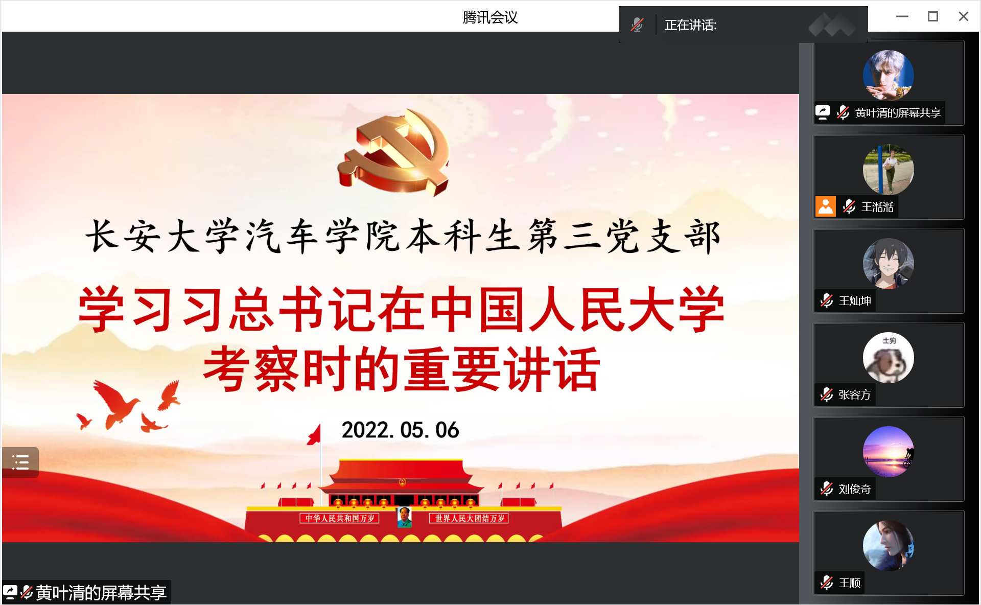 5月6日,成人漫画 本科生第三党支部在腾讯会议进行了关于学习习近平总书记在中国人民大学考察时的重要讲话的专题学习。会上组织委员黄叶清同学带领支部全体党员认真学习了习近平总书记的重要讲话。习近平总书记强调,广大青年要做社会主义核心价值观的坚定信仰者、积极传播者、模范践行者,向英雄学习、向前辈学习、向榜样学习,争做堪当民族复兴重任的时代新人,在实现中华民族伟大复兴的时代洪流中踔厉奋发、勇毅前进。同时习近平总书记指出,立足新时代新征程,中国青年的奋斗目标和前行方向归结到一点,就是坚定不移听党话、跟党走,努力成长为堪当民族复兴重任的时代新人。希望广大青年用脚步丈量祖国大地,用眼睛发现中国精神,用耳朵倾听人民呼声,用内心感应时代脉搏,把对祖国血浓于水、与人民同呼吸共命运的情感贯穿学业全过程、融汇在事业追求中。最后党支部书记许老师总结发言,作为新时代的大学生,我们一定要肩负起当代青年大学生的责任使命,勇当开路先锋、争当事业闯将,为中华民族伟大复兴不懈奋斗。