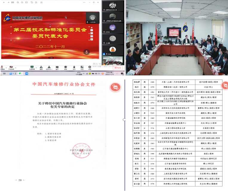 此次会议采用线上线下相结合的方式,全国各省市近300名专家代表参加了线上会议,中国汽车维修行业协会会长张延华,监事长兼技标委主任委员严波,协会资深专家王凯明、蔡格平、渠桦,秘书处副秘书长康学楠、邱红等现场参会,会议由技标委副秘书长底彦彬主持。