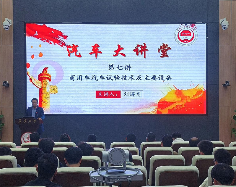 本次讲座主题为《商用汽车试验技术及主要设备》,刘遵勇老师分别从汽车试验的概念、汽车试验的目的、汽车试验的分类、试验技术发展背景、试验技术发展方向五个方面对汽车试验作了详细的阐述与介绍。期间他结合自身体验,风趣的讲解了在青藏高原、吐鲁番、漠河等地从事三高试验的经历,鼓励与会同学立志汽车研发事业,做有理想、敢担当、能吃苦、肯奋斗的新时代青年。