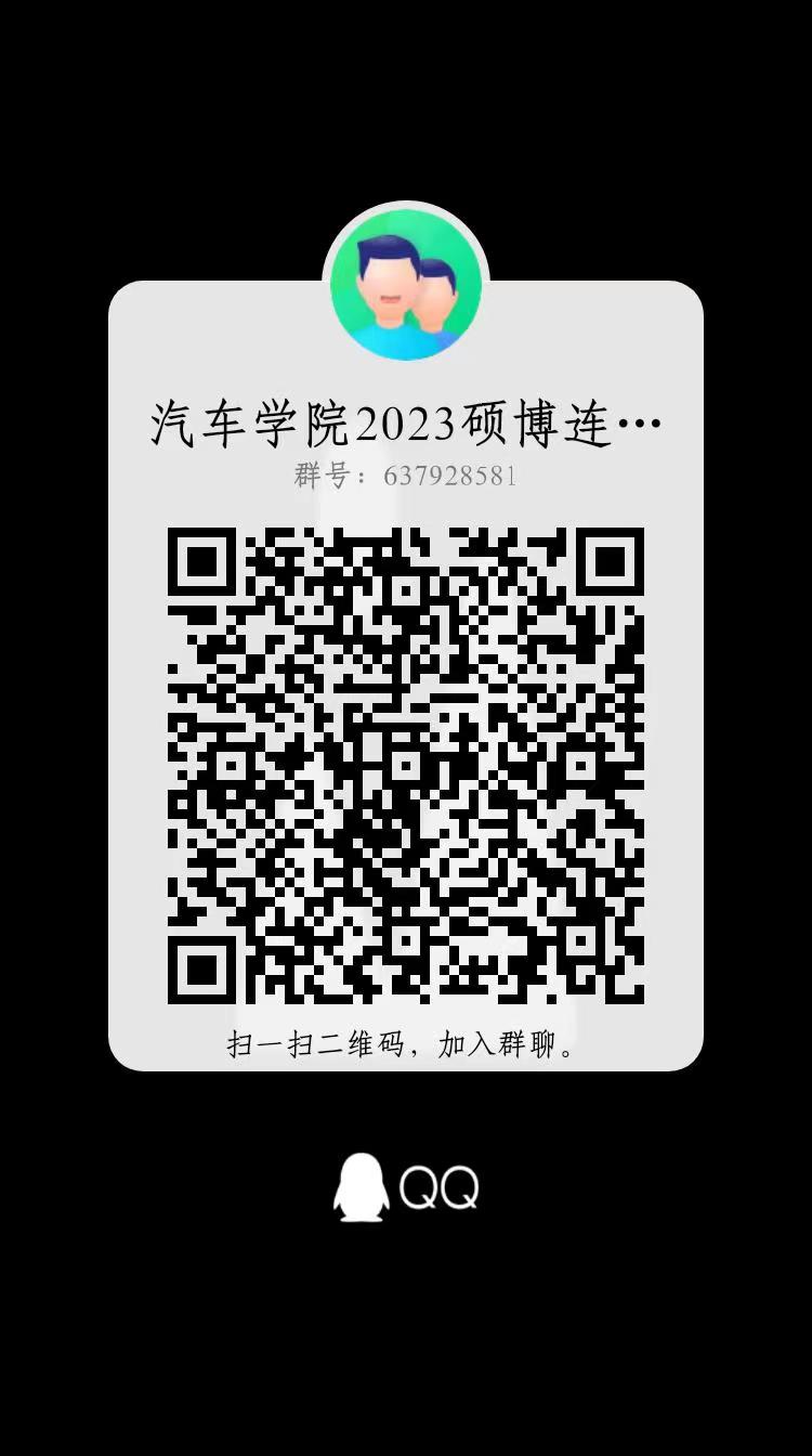 3. 2023年4月10日-2023年4月12日,安排资格审查合格学生参加复试。拟打算硕博连读,申请考核的学生,请加QQ群(637928581),或直接扫描QQ群二维码。具体的复试时间和复试方式,在群内另行通知,请及时关注群消息。