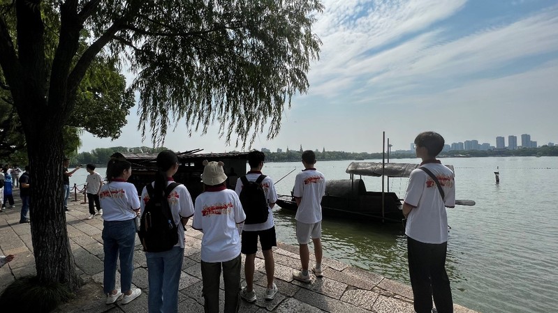 7月15日,实践队来到浙江嘉兴南湖深入探寻党的初心使命。参观完南湖红船之后,实践队前往南湖革命纪念馆,跟随志愿者详尽的讲解,深刻体悟“红船精神”的丰富内涵。