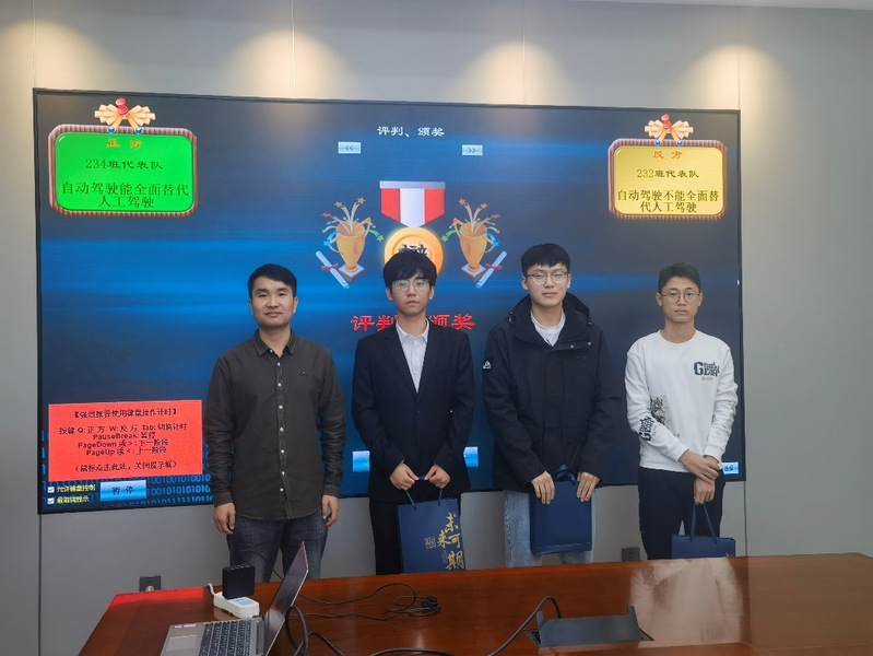 10月21日下午,成人漫画 2023级研究生“新生杯”专业辩论赛决赛在成人漫画 219会议室顺利举办。出席本次比赛的评委有成人漫画 团委副书记、研究生辅导员张强,成人漫画 校辩论队成员崔润石,成人漫画 研科协副主席杨玉琪,比赛由234班杨耀理主持。本次比赛正反双方围绕“自动驾驶能否全面替代人工驾驶”这一辩题展开激烈辩论。正方(234班代表队)所持观点是自动驾驶能全面替代人工驾驶,反方(232班代表队)所持观点是自动驾驶不能全面替代人工驾驶。