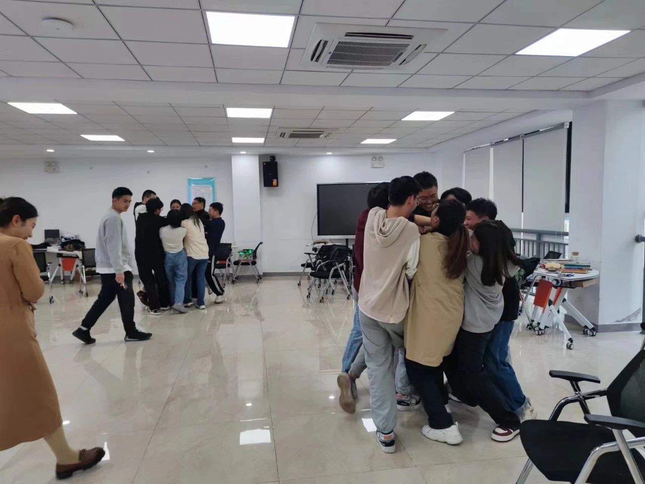 在同学们进一步了解彼此后,杨倩老师以八人小队为单位进行了名为“同舟共济”的小游戏,需要同学们集思广益如何一起协作单脚站立在报纸上并保持十秒。随着报纸面积的不断减小,沉浸在游戏中的同学们都在努力尝试各种方法通过合作实现共同的目标。通过游戏,同学们认识到了在团队合作中,每个人的贡献都是不可或缺的,大家更好地理解了团队合作和集体智慧的力量。