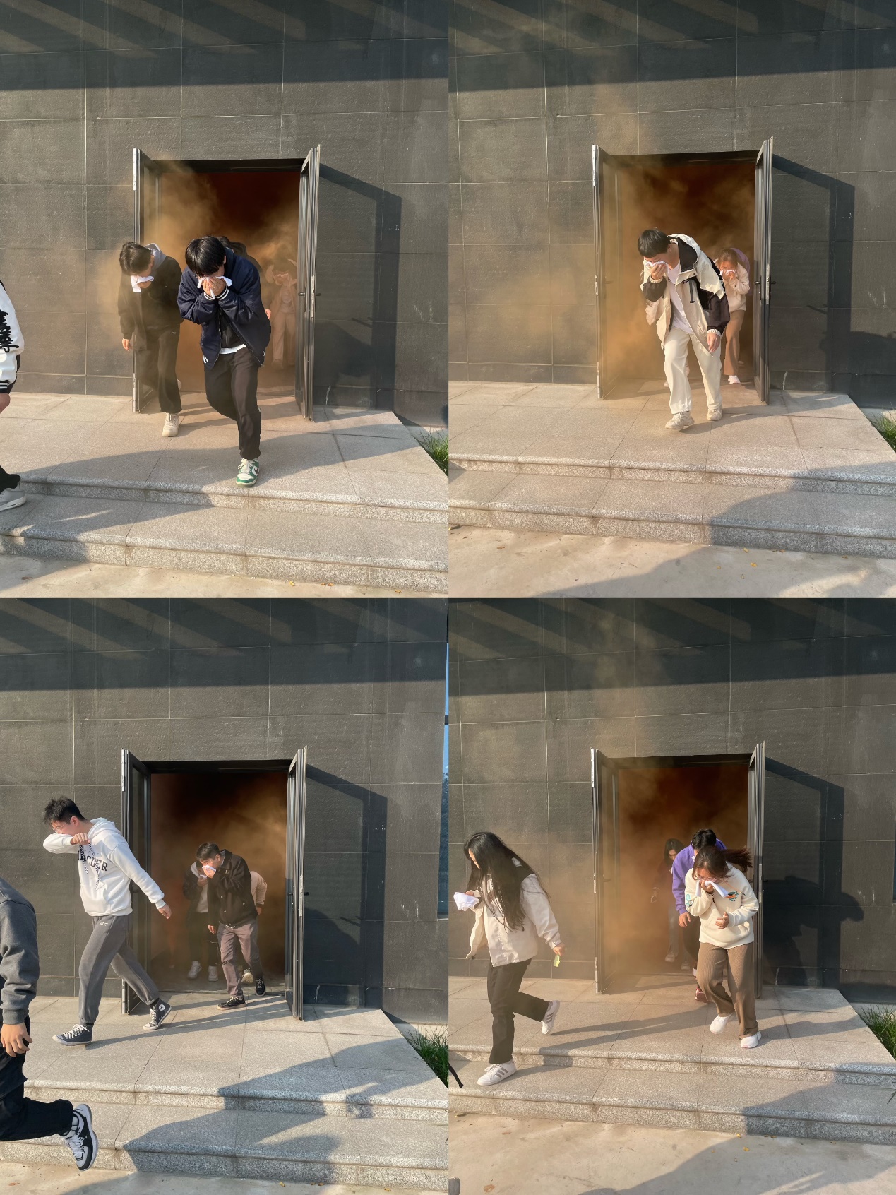 随后,在消防安全专家的指导下,成人漫画 师生开展了消防安全演练。听到警报声后,在老师的带领下学生们弯着腰、猫着步、用毛巾捂住口鼻,沿着疏散通道快速前进,有序撤离到学院楼东侧的安全地带,之后张强老师清点人数,全体师生安全撤离,用时仅2分钟。