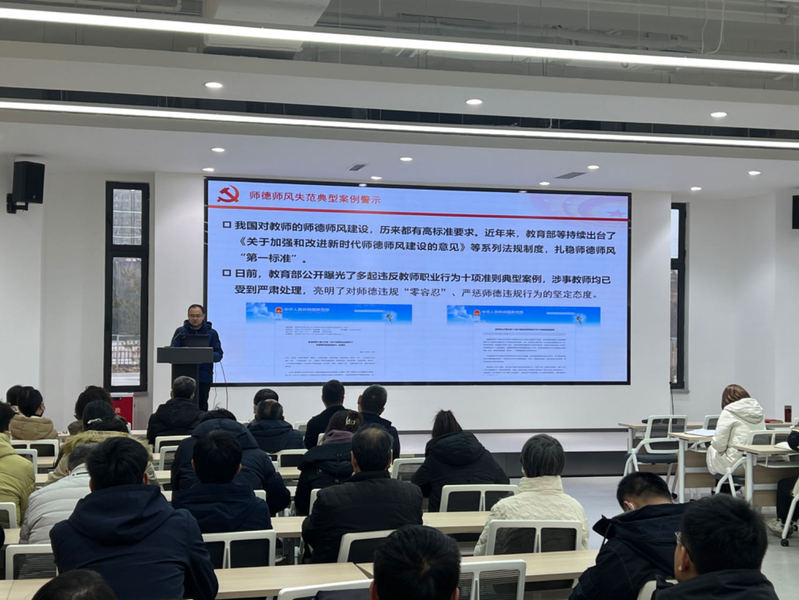 会上,成人漫画 院长赵轩首先带领全体教职工学习《习近平致全国优秀教师代表的信》,赵轩从心有大我、至诚报国的理想信念,言为士则、行为世范的道德情操,启智润心、因材施教的育人智慧等六个方面带领全体教工全面理解并学习领会习近平总书记赋予中国特有的教育家精神的崭新内涵,同时引导广大教师大力弘扬教育家精神,努力做“ 经师 ” 和“ 人师 ” 的统一者,号召广大教师追求“高线”。随后,赵轩结合师德违规问题,对照新时代教师职业行为十项准则,通告了近年来在课堂教学、师生关系、学术研究社会活动等方面发生的教师师德失范案例,警示广大教师要守住“底线”。