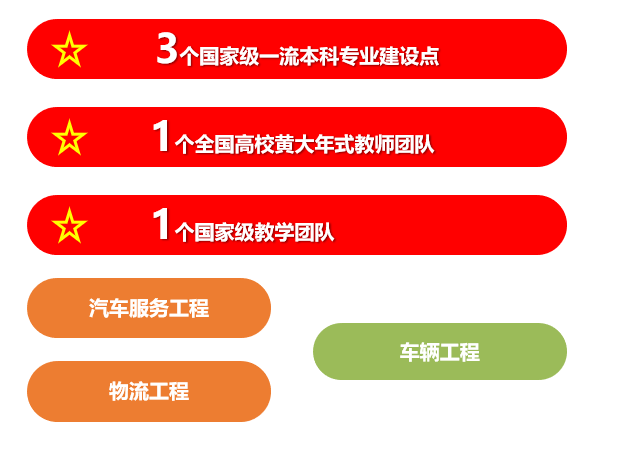 学院拥有交通运输工程1个国家“双一流”建设学科、国家级重点学科;交通运输工程、机械工程2个博士后流动站。现有车辆工程、汽车服务工程、物流工程、智能车辆工程4个本科专业,汽车性能、运载工程、车辆结构3个本科教学实验室。
