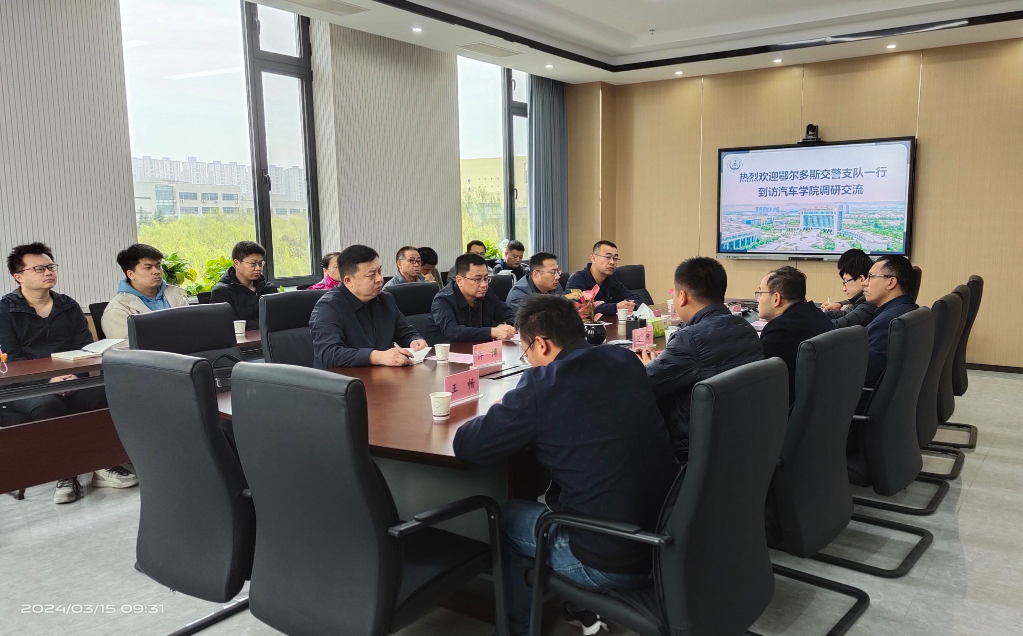 赵轩代表学校热烈欢迎鄂尔多斯交警支队,并对支队长期以来对成人漫画 的支持与帮助表示衷心的感谢,他表示学院依托汽车运输安全保障技术交通行业重点实验室等平台,长期开展汽车交通安全方面研究,学院也将继续发挥学科优势,加强与交警支队的合作交流。赵刚对成人漫画 在道路交通安全、车辆检测技术等方面的研究成果表示了高度的肯定,并对鄂尔多斯交通管理情况、交警支队基本情况及发展中所遇到的问题进行了交流,希望能在道路交通安全规划、交通事故防控精细化管理、共建联合实验室等方向,进一步推动警校合作落地。牛世峰从学院历史沿革、学科专业设置、人才培养、科研平台等方面介绍了成人漫画 发展状况,并详细介绍了人车系统安全理论与技术研究最新成果。