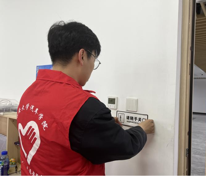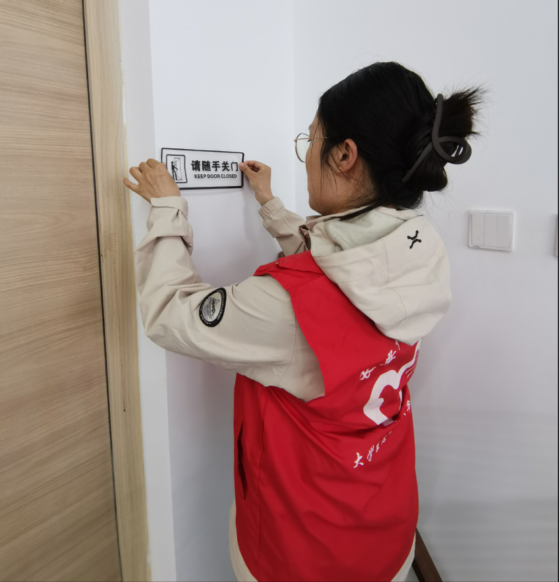 在活动结束之余,参与本次活动的志愿者也分享了自己的活动感受。康志刚同学说:“为了便利同学们,今天下午有幸参与了学院的志愿服务活动,帮助给每一个工位自习室都贴上一个带有“随手关门”和“垃圾入纸篓”的提示语,这样的提示符对于大家起到一个很好的督促作用,助力工位自习室更好的运转”;张星同学认为这些标识不仅有提醒作用,同时还具有规范作用,促使同学们遵守规定,养成良好的习惯保障了良好的学习风气和学习环境;周子欣同学表示工位的良好学习环境需要每个人去维护,作为研会的一份子有机会参与这一项活动也十分荣幸和有成就感。