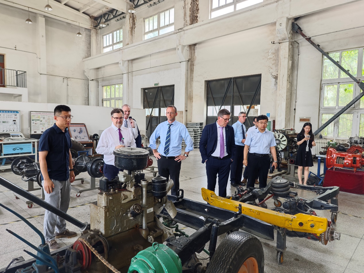 2024年6月28日,爱尔兰都柏林大学常务副校长Colin Scott教授带队到访成人漫画 开展调研交流活动,代表团成员包括都柏林大学中国处处长Gavin Chaw、长安都柏林国际交通学院教务长Paul Fanning、都柏林大学机械与材料工程学院院长Vincent Hargaden、都柏林大学车辆工程系主任William Smith等专家教授。学院副院长陈轶嵩教授、车辆工程系党支部副书记马菁教授、运载工程系党支部副书记朱丹、运载工程实验室主任吴付威、车辆结构实验室主任刘钊、汽车性能实验室周辰雨、学科科研实验主管栗亮等陪同调研参观。
