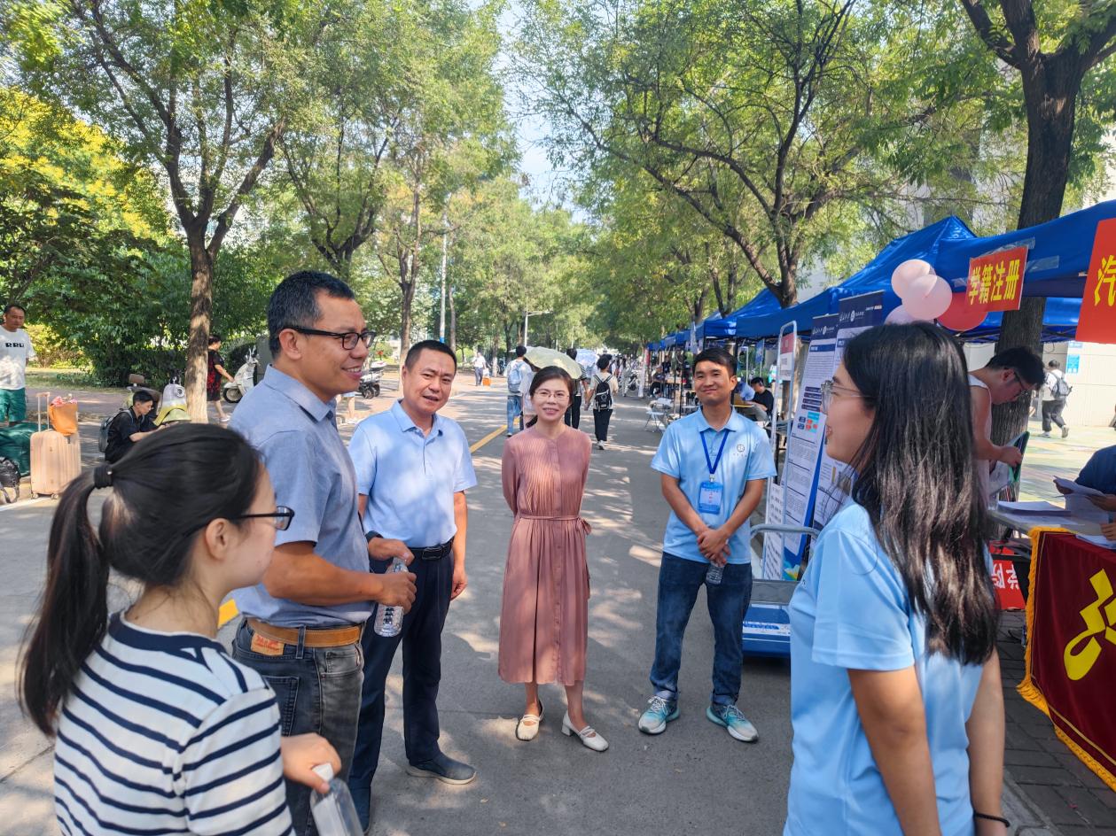 迎新期间,学校及学院领导亲临现场检查指导迎新工作,深入了解新生报到情况、迎新举措和特色服务,慰问志愿者,全力保障迎新工作顺利进行,希望工作人员统筹兼顾,贴心服务,及时解决新生报到遇到的各种问题,帮助新生尽快适应新生活。