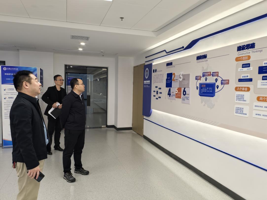 赵轩一行参观了安徽高等研究院2024年项目成果展示,与安徽高等研究院筹建工作组相关负责同志就研究院总体建设进展、产学研合作、博硕人才培养模式及政策支持,以及下一步工作安排等关键问题展开深度交流。
