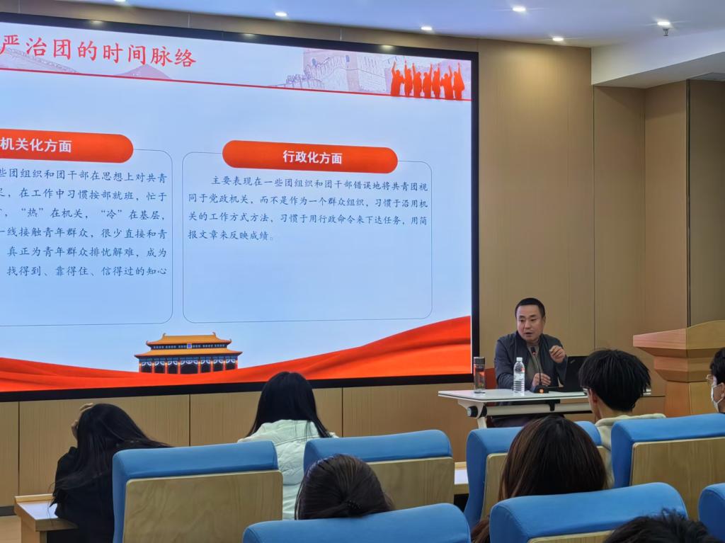 林贵宝从时间脉络、必要理由、实践逻辑三个方面深入剖析了全面从严治团这一重大使命,带领学员们全面学习进一步全面深化改革的重大举措。林贵宝鼓励学员们脚踏实地学、结合实际干,胸怀强国之志、锤炼强国之技、勇建强国之功,为实现国家富强、民族复兴、人民幸福贡献青春力量。
