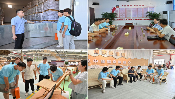 图为实践队员调研大米企业及非物质文化遗产“汉中藤编”